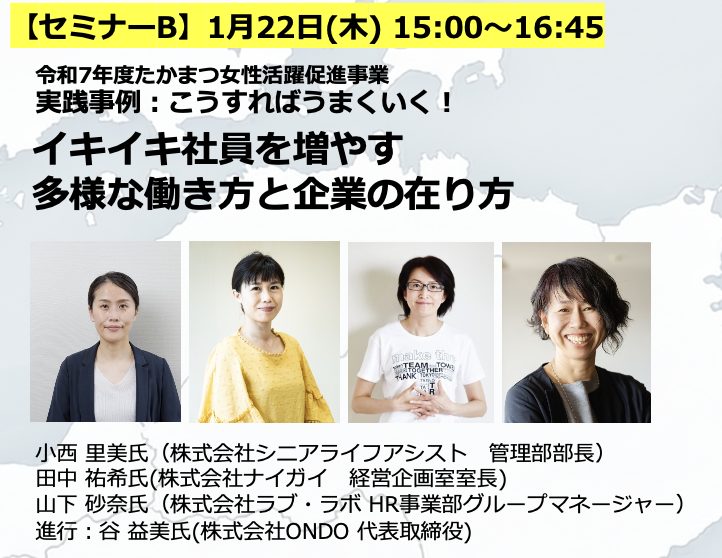 ■令和7年度たかまつ女性活躍推進事業 実践事例:こうすればうまくいく!【イキイキ社員を増やす多様な働き方と企業の在り方】